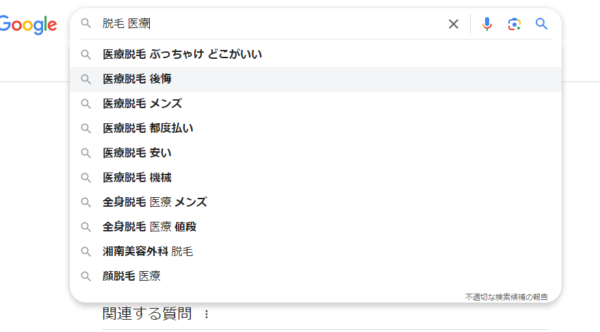 すると、Googleのサジェストキーワードがいくつか出てきます。