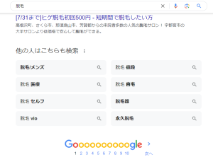 たとえば、脱毛について検索するときに「脱毛」と検索ボックスに入れるこの言葉が「キーワード」になります。